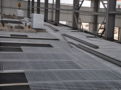 化工廠用鋼格板 鋼格板是用承載扁鋼和橫桿按照一定的間距進行正交組合,通過焊接或壓鎖加以固定的開敞式鋼構(gòu)件;橫桿一般采用經(jīng)過扭絞的方鋼、也可采用圓鋼或扁鋼,材質(zhì)分為碳鋼和不銹鋼鋼格板主要用來做鋼結(jié)構(gòu)平臺板、溝蓋板、鋼梯的踏步板、建筑物吊頂?shù)取? 簡介 ···